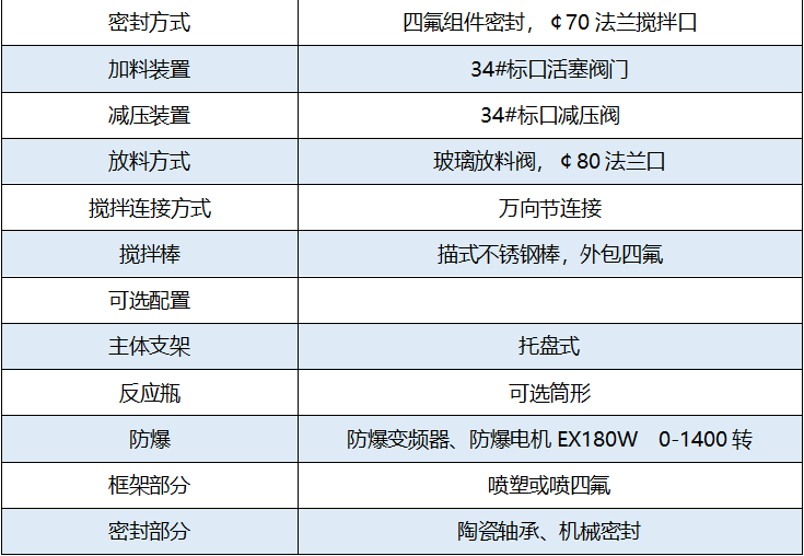 • 下放料部分为玻璃法兰口配套特殊设计聚四氟阀门,容器内无死角,可拆卸便于固体物料出料。