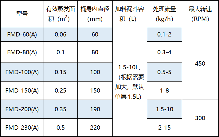 短程分子蒸馏的基本参数: